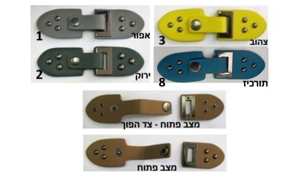 דף הבית » מוצרים » כללי » אבזמים, טבעות, קרבינות, שרשראות » סגירה עור צבעונית