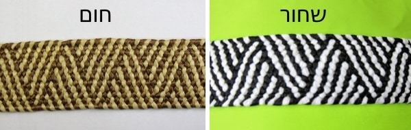 עדין ורך, רוחב: 4 ס"מ, 2 צבעים: חום ושחור, חומר: קש, צבע – שילוב בז' ושחור