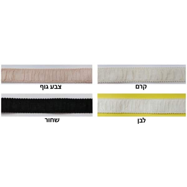 רוחב 2 ס"מ, המחיר ל-1 מטר, צבעים: לבן, קרם, צבע גוף, שחור,