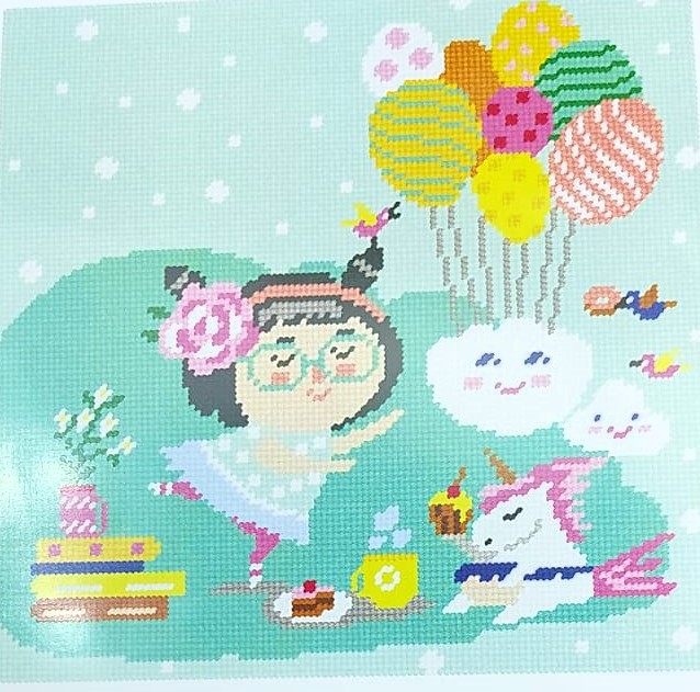 40*40 ס"מ הסט כולל: רשת עם הדפס, חוטים ומחט עבה ללא חוד