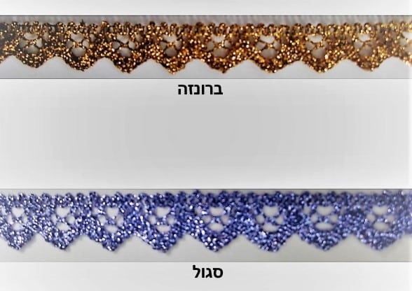 רוחב 1.5 ס"מ, צבעים – סגול וברונזה, חומר – חוט מטליק עדין ורך