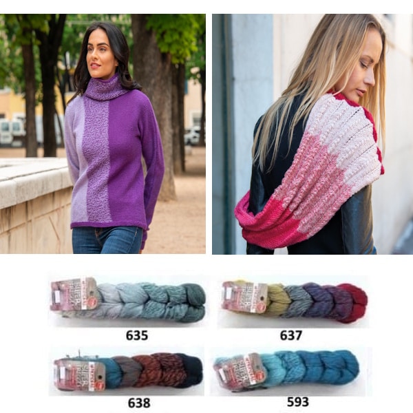 הרכב: 50% צמר מרינו, 50% מיקרופיברה משקל: 200 גרם אורך: 440 מטר מסרגות: 4 – 5 מ"מ תוצרת: MONDIAL איטליה